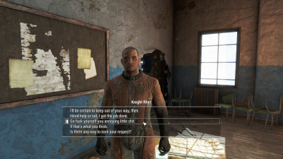 Напомним, механика общения с персонажами из Fallout 4 не понравилась большинству геймеров и даже разработчикам: колесо с четырьмя вариантами ответа сочли примитивным и ограничивающим свободу отыгрыша роли.